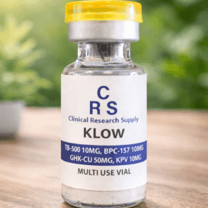 KLOW peptide blend (80mg total) combining TB-500, BPC-157, GHK-CU, and KPV in a single vial. Designed for advanced research in tissue regeneration, inflammation pathways, and cellular repair.